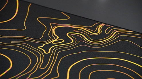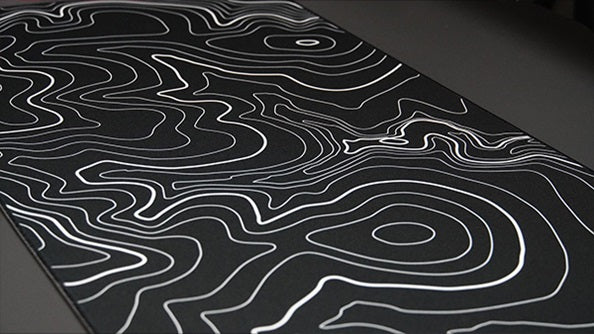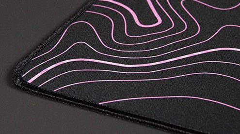 The surface is made of an exclusively woven polyester fabric. To prevent fraying, the mouse pad is reinforced with a sewn edging.