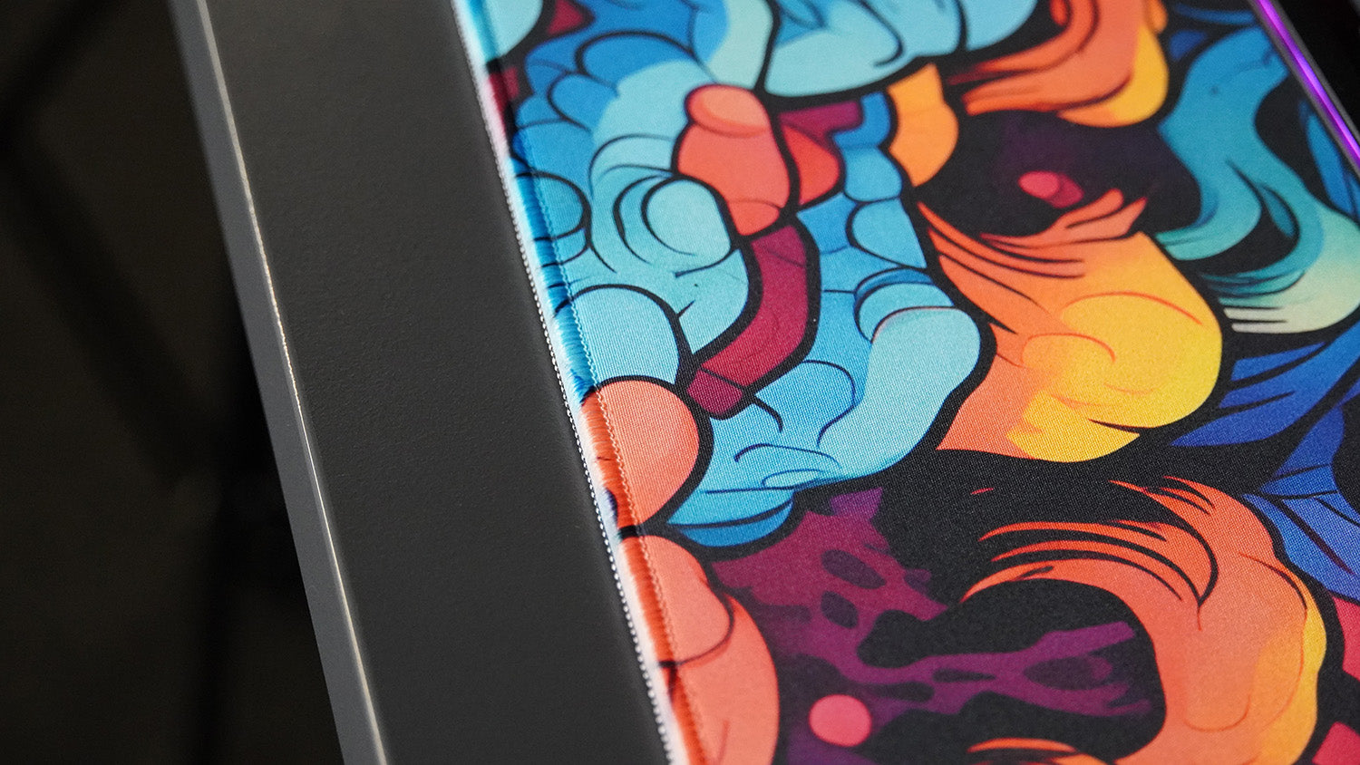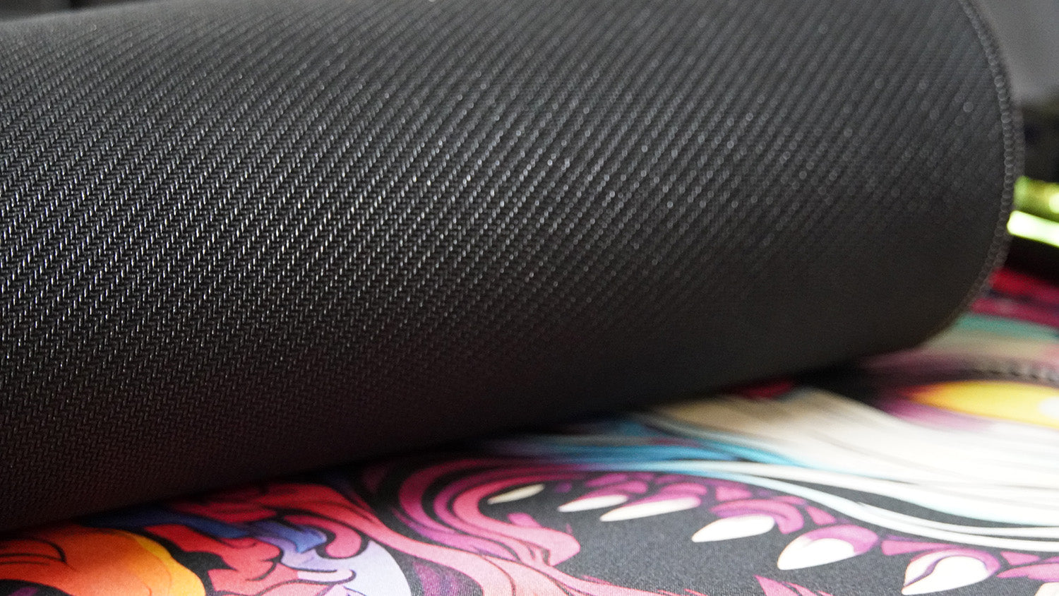 Oberfläche besteht aus einem exklusiv gewebten Polyesterstoff. Um ein Ausfransen zu vermeiden, wird das Mauspad mit einer genähten Umkettelung verstärkt.